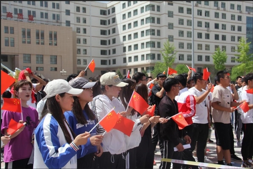 首先72886必赢学生会主席李宽宣读了“五·四”运动的光辉事迹,为大家重温了那个时代青年学子反对旧思潮、追求民主进步的良好愿望。接着全体同学齐唱了《中华人民共和国国歌》及《歌唱祖国》两首动人心弦的爱国主义国歌。每个同学挥动五星红旗,声音洪亮,激情澎湃,兰州文理学院学院国旗护卫队的各位同学身着整齐的军礼服,加入到合唱队伍中,下课的同学也纷纷加入合唱,感受快闪的魅力,美丽的雁苑上空久久回荡着歌唱祖国的旋律。